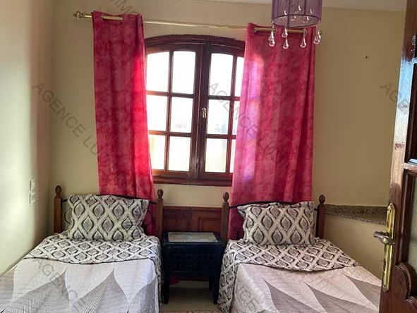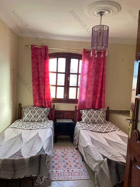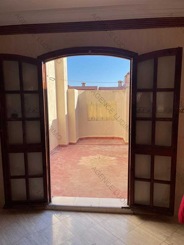 Cet appartement de 70 m² indépendant est situé au 2 ème étage d’une villa du quartier prisé de Mostakbal au sud d’Essaouira, il comporte deux chambres, salon, cuisine et SDB et bénéficie d’une terrasse de 12 m². Prix de la location : 5 000 dh/mois.