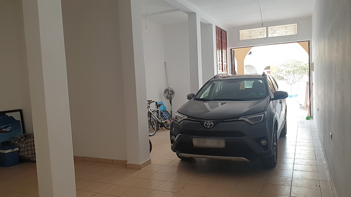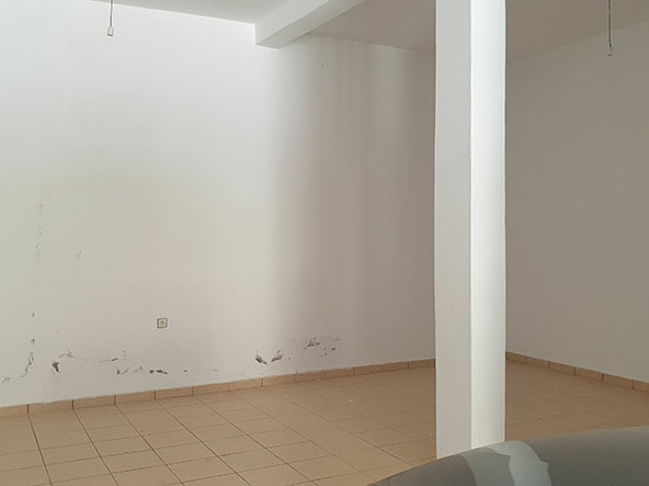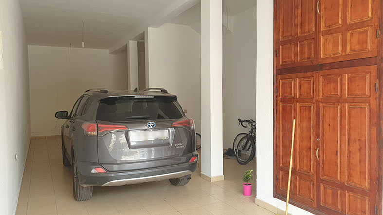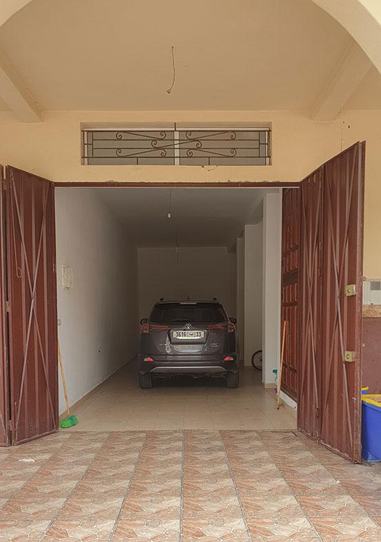 Garage carrelé et peinture intégrale sur 40 m² de surface au sol, largeur 3 m, porte en acier de belle facture, 2 places de voiture sur la longueur, commerce possible. Il comporte une sanitaire, la hauteur de plafond permet la création d’une mezzanine. A négocier : 864 000 dh